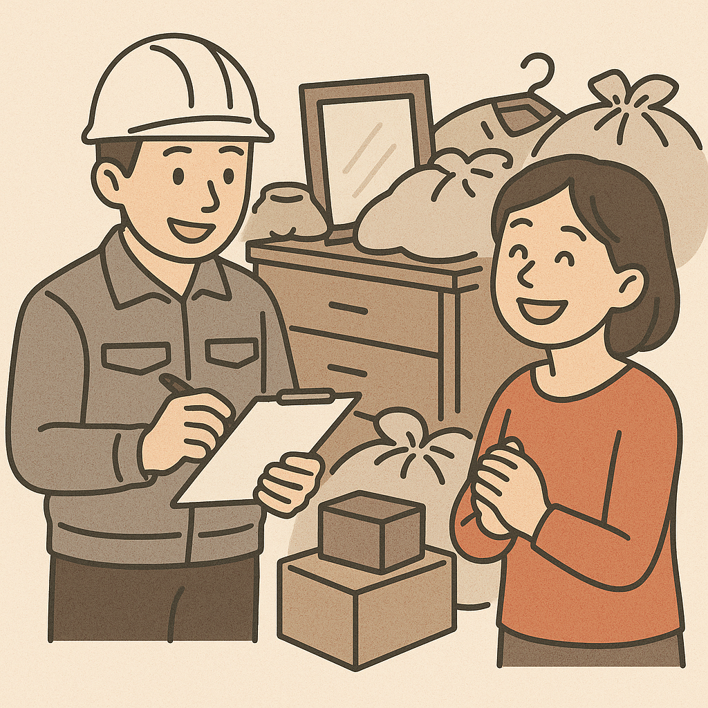 仕分け・搬出・清掃までワンストップ。立ち会い不要も可。